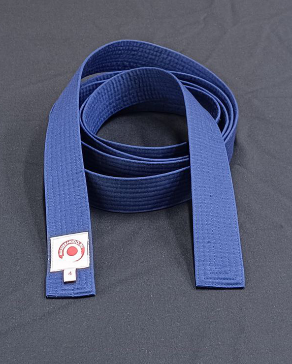 Стандартный синий пояс для будо. Эта модель сделана из высококачественного фелта и сверху обшита тканью из хлопка. Пояс шириной 4,2 см прошит 8 линиями строчек для большей прочности. Пояс легко затягивается и хорошо держит узел во время тренировок.