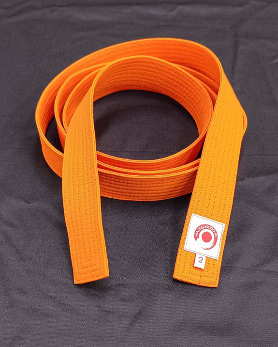 Стандартный оранжевый пояс для будо. Эта модель сделана из высококачественного фелта и сверху обшита тканью из хлопка. Пояс шириной 4,2 см прошит 8 линиями строчек для большей прочности. Пояс легко затягивается и хорошо держит узел во время тренировок.
