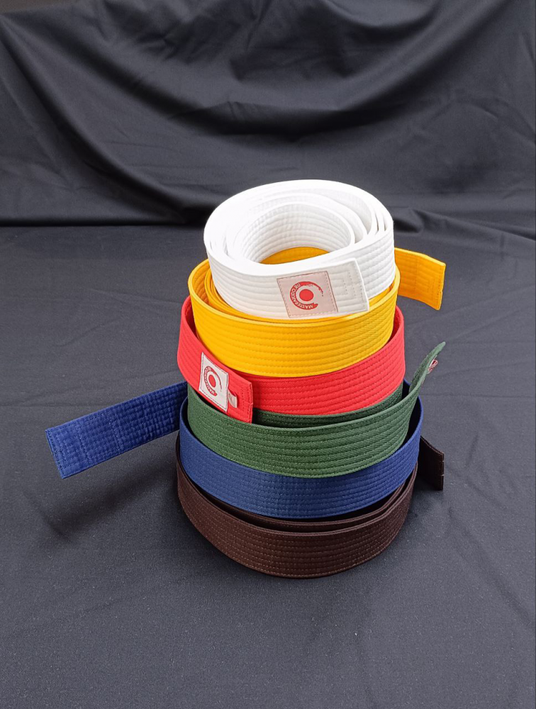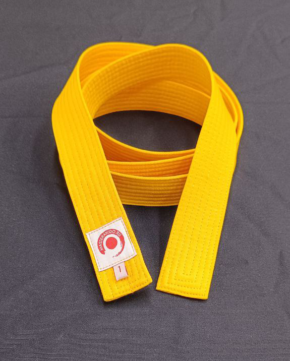 Стандартный жёлтый пояс для будо. Эта модель сделана из высококачественного фелта и сверху обшита тканью из хлопка. Пояс шириной 4,2 см прошит 8 линиями строчек для большей прочности. Пояс легко затягивается и хорошо держит узел во время тренировок.